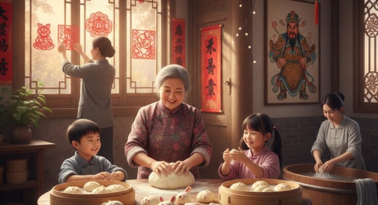 年画 เหนียนฮั่ว การติดภาพวาดมงคลประจำปี